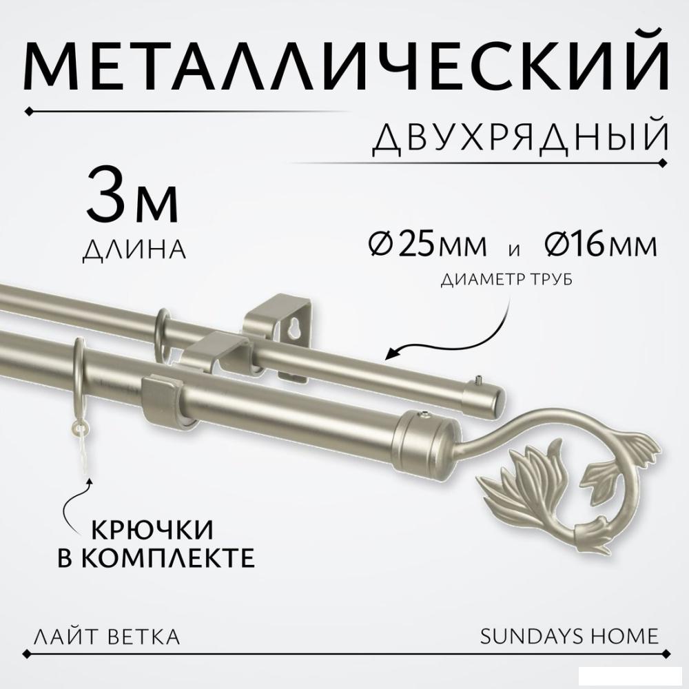 | Карниз для штор Sundays Home Лайт Ветка 25мм+16мм двухрядный (сатин, 3м) | 71.03 | Продавец 1 | 23.01.2026 15:00 | Нал/Безнал. | Сегодня |