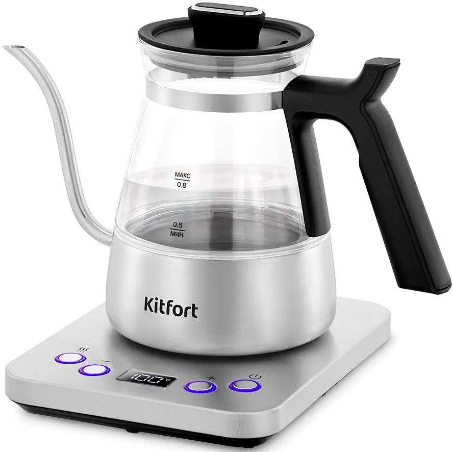Описание ✅ Чайник для варки кофе Kitfort KT-8707 — это стильное и функциональное устройство, созданное специально для ценителей кофе и чая. Благодаря тонкому носику он идеально подходит для приготовления кофе методами кемекс или пуровер, обеспечивая аккуратную подачу воды и равномерную экстракцию вкуса. Корпус выполнен из сочетания нержавеющей стали, стекла и пластика, а удобная пластиковая ручка не нагревается. | |