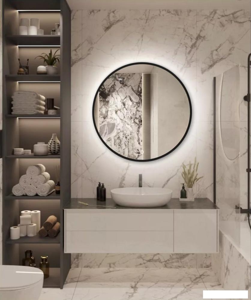 Описание ✅ Большое круглое зеркало в стильной раме – идеальное решение для тех, кто хочет добавить уникальности в интерьер. Дневная белая подсветка (4000К) создает комфортное освещение, которое приятно воспринимается глазами. | |