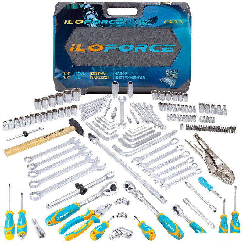 ✅ Набор инструментов включает в себя 142 предмета, среди которых головки на 1/4", 3/8" и 1/2", удлинители, трещотки, карданные шарниры и множество других приспособлений, необходимых для слесарных, ремонтных и монтажных работ. Все инструменты изготовлены из хромовандиевой стали, что гарантирует их высокое качество и долговечность. | |
