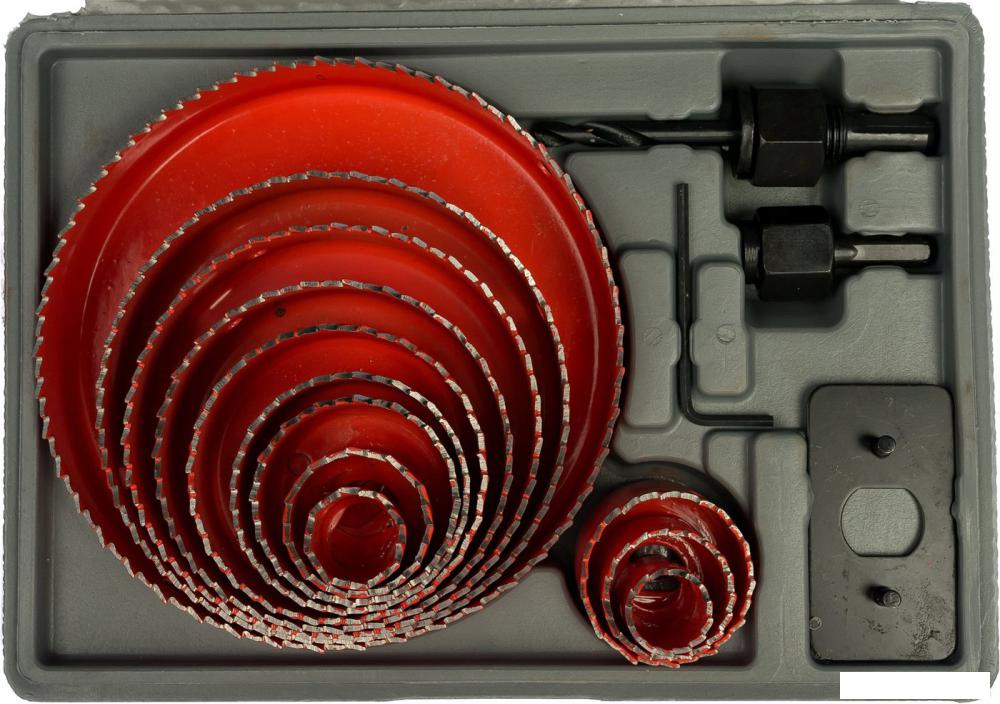 Описание - 12 коронок диаметром - 19 мм; 22 мм; 30 мм; 32 мм; 38 мм; 44 мм; 51 мм; 64 мм; 76 мм; 89 мм; 102 мм и 127 мм; | |