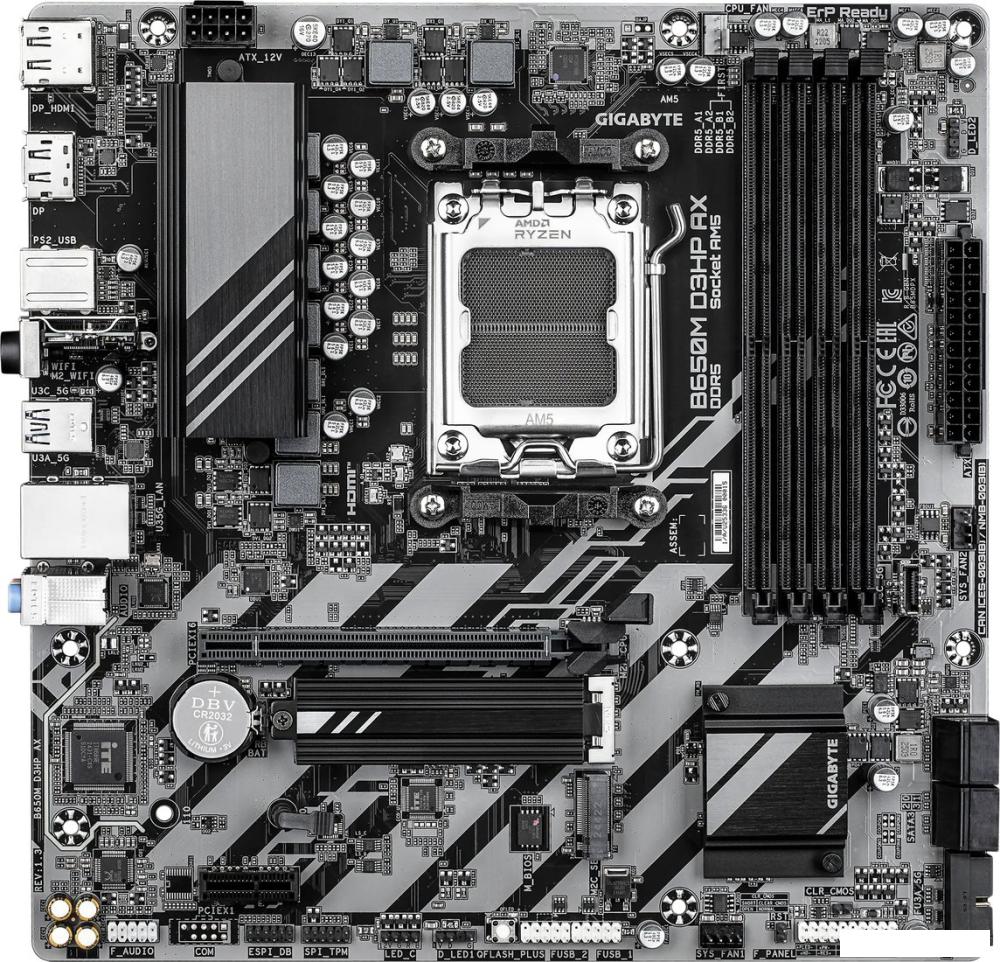 Описание ✅ GIGABYTE B650M D3HP AX (rev. 1.3) - это современная материнская плата формата microATX, предназначенная для сборки высокопроизводительных систем на базе процессоров AMD Ryzen серий 7000, 8000 и 9000 с поддержкой новейшего сокета AM5 и чипсета AMD B650. Она оснащена 4 слотами DDR5, обеспечивающими быстрый отклик системы и поддержку объема оперативной памяти до 256 ГБ, а также поддерживает разгон модулей памяти до 8000 МГц благодаря технологиям AMD EXPO и Intel XMP. | |
