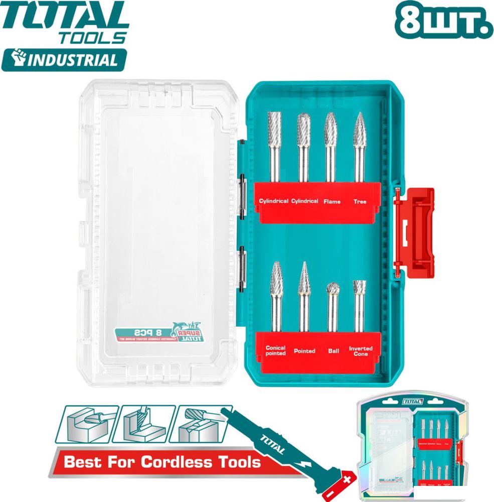 | Комплектация | Цилиндрическая фреза (Cylindrical shape) - 2 шт. Древовидная фреза (Tree shape) - 1 шт. Шаровая (шарообразная) фреза (Ball shape) - 1 шт. Пламевидная фреза (Flame shape) - 1 шт. Заострённая древовидная фреза (Pointed tree shape) - 1 шт. Коническая заострённая фреза (Conical pointed shape) - 1 шт. Обратно-коническая фреза (Inverted Cone shape) - 1 шт. Кейс Блистер |
