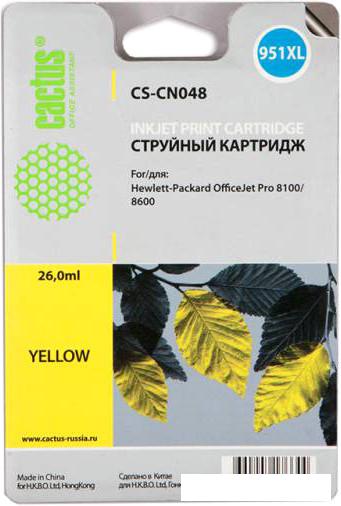 | Картридж струйный Cactus CS-CN048 желтый для №950 HP PhotoSmart HP OfficeJet Pro 8100/8600 (26ml) | 16.38 | Продавец 1 | 22.12.2025 10:56 | Безнал. | 1-2 дня |
