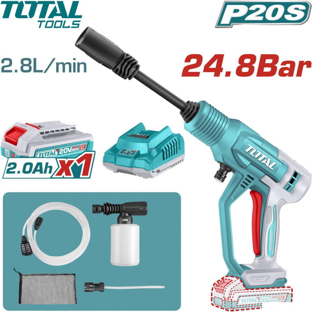 | Комплектация | - Мойка высокого давления - 1 шт. - Аккумулятор 2,0 Ач - 1 шт. - Зарядное устройство - 1 шт. - 2-х режимный распылитель - 1 шт. - Шланг 6 метров для подачи воды с быстросъемным соединеннием - 1 шт. - Самовсасывающий коннектор - 1 шт. - Пеногенератор 300 мл - шт. - Сумка - 1 шт. - Инструкция - Коробка |