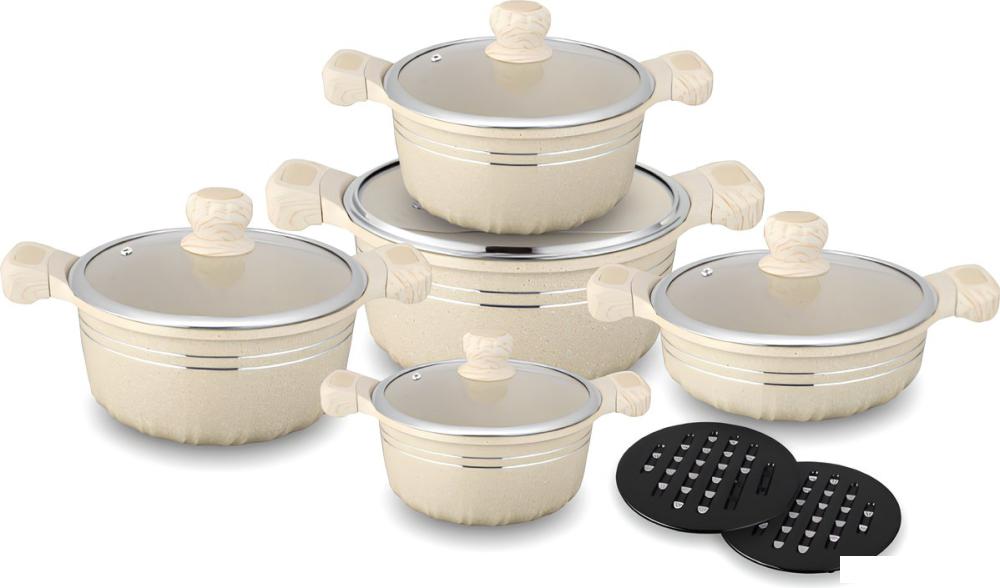 | Состав набора | сотейник, кастрюля (4 шт.), подставка под горячее (2 шт.) |