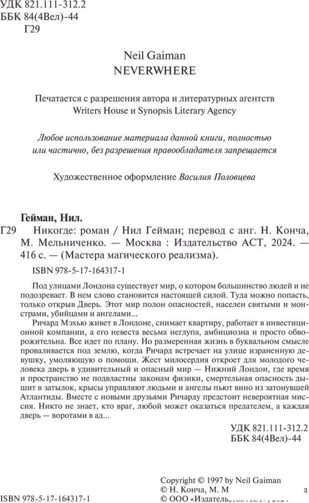 Книга издательства АСТ. Никогде (Гейман Нил). Опт - все предложения в Минске