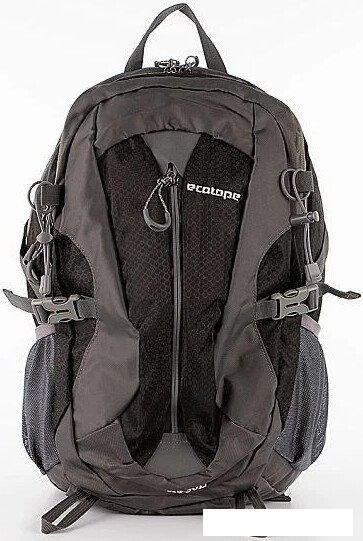 Описание Туристический рюкзак от торговой марки из текстильного материала в сочетании серого и черного цвета. | |
