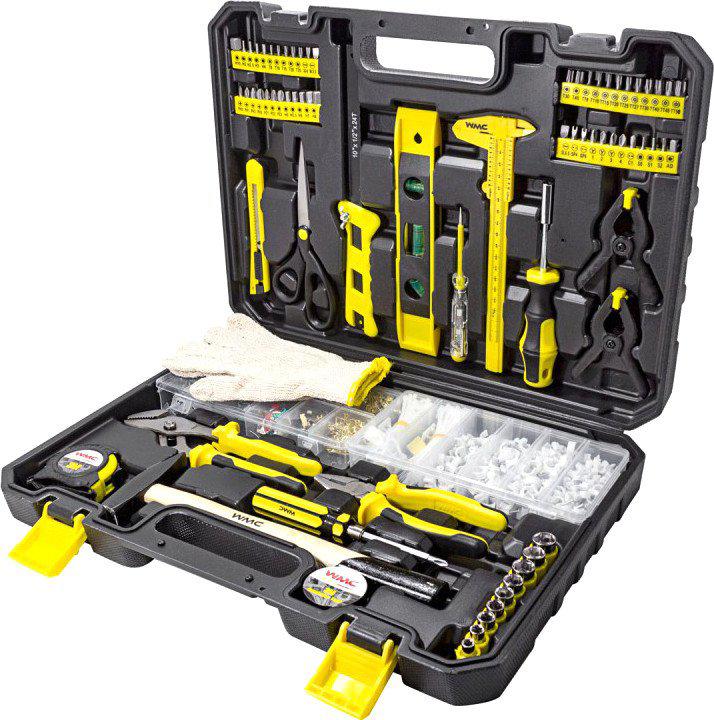 | Комплектация | торцевые головки 1/4" (5–13 мм), рукоятка битодержатель, универсальные ножницы, набор бит (SL, PH, PZ, HEX, TORX и другие), изолента, рулетка 3 м, ножовка, отвертки, строительный уровень, молоток, пассатижи, струбцины, штангенциркуль, крепеж, рабочие перчатки и многое другое |