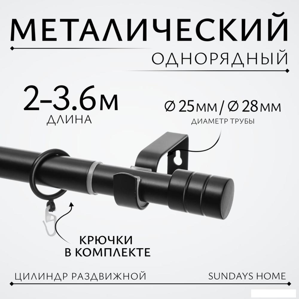 | Карниз для штор Sundays Home Цилиндр Раздвижной 25/28мм 1-рядный (черный матовый, 2-3.6м) | - | Продавец 2 | 04.12.2025 15:50 | Нет в наличии | - |