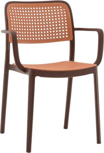 Описание Yona с подлокотниками — это удачное сочетание современного минимализма и винтажного шика. Характерный плетёный узор сиденья и спинки в бежевом оттенке отсылает к традиционным ротанговым стульям, но выполнен полностью из прочного пластика. Красный каркас подчёркивает тёплую, натуральную эстетику, делая стул уютным акцентом в любом интерьере._x000D_ | |
