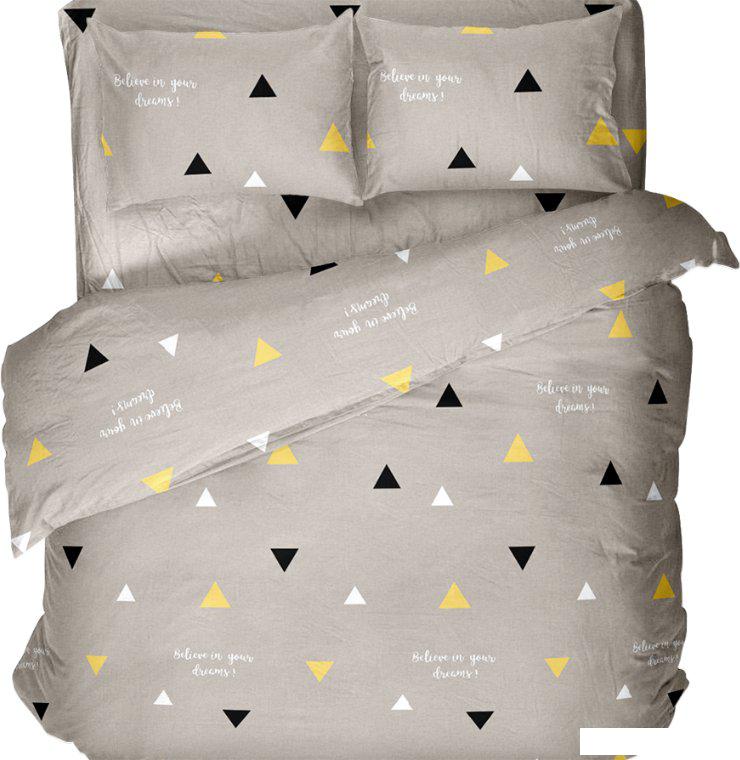Использование хлопковой фланели с плотностью 160 г/м² обеспечивает баланс между мягкостью и долговечностью ткани. Дизайн с геометрическими элементами и каллиграфией придаёт комплекту индивидуальность и современный вид, выделяя его среди классических вариантов постельного белья.