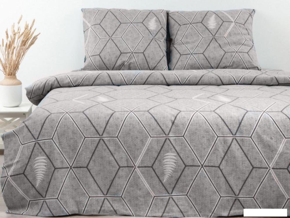 Комплект постельного белья предназначен для двуспальной кровати и включает пододеяльник, две наволочки и простыню. Изготовлен из 100% хлопка с использованием мягкой и теплой фланели плотностью 160 г/м², что обеспечивает комфортный сон в прохладное время года. Основной цвет комплекта - серый с геометрическим рисунком, который добавляет современный стиль в интерьер спальни.