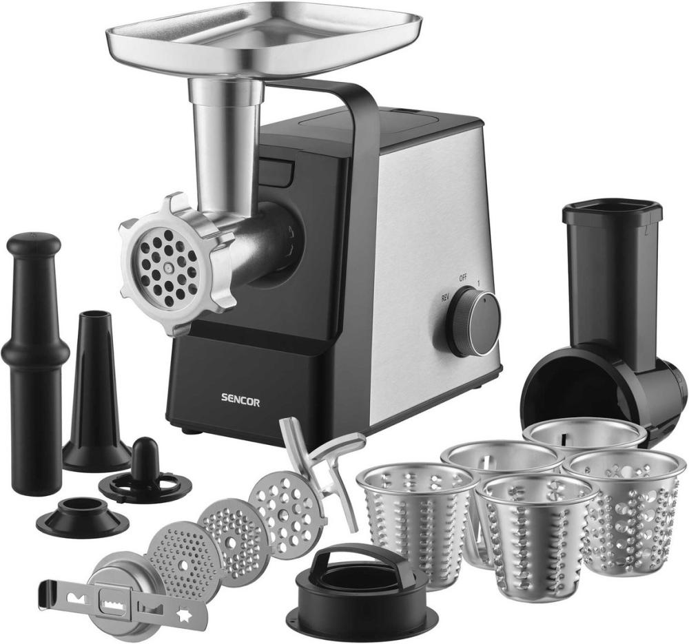 | Полная комплектация | мясорубка, 3 формовочных диска, нож из нержавеющей стали, алюминиевый поддон, толкатель, насадка для колбас, насадка для кеббе, терки для сыра и орехов, инструкция |