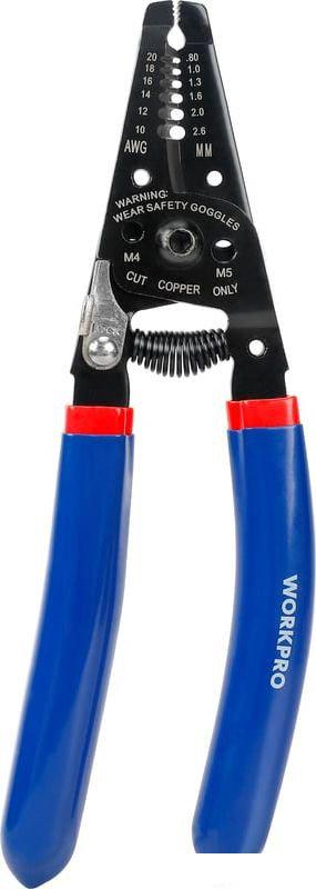 Описание ✅Инструмент для зачистки проводов WORKPRO длиной 180 мм предназначен для быстрого и удобного снятия изоляции с проводов диаметром от 0.8 до 2.6 мм. Читать дальше | |