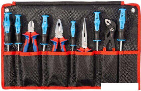 | Комплектация | пассатижи 180 мм длинногубцы 200 мм бокорезы 160 мм отвертка: шлиц 4.0х100 отвертка: шлиц 5.5х125 отвертка: PH1x100 отвертка: PH2x125 отвертка: PZ1x100 отвертка: PZ2x125 клещи переставные 180 мм |