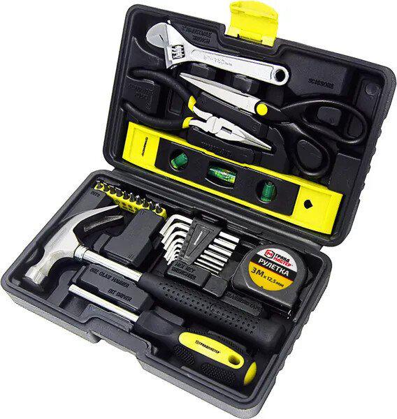 Описание Столярно-слесарный набор включает в себя необходимые инструменты для использования в быту. Состав набора позволит выполнить мелкий ремонт дома и на даче, а также пригодится для ремонта колесной и бытовой техники. | |