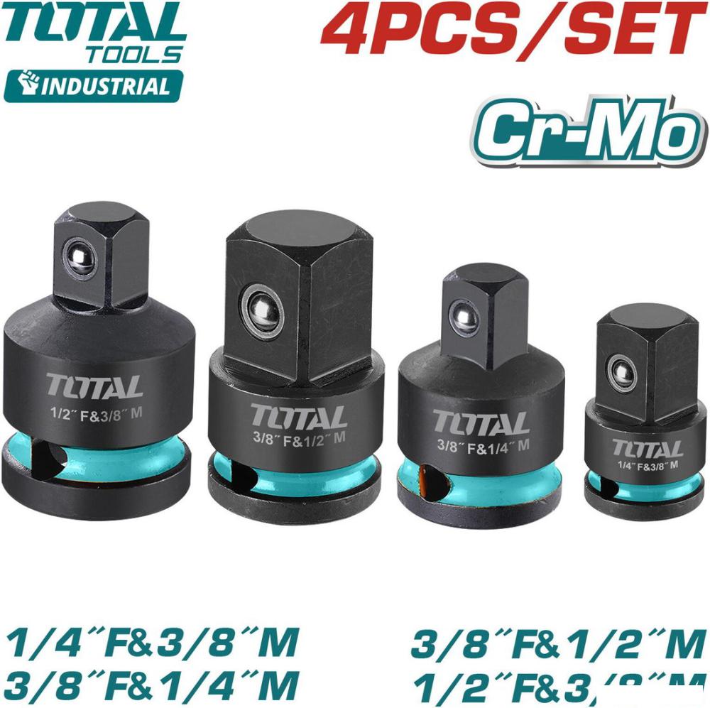 | Комплектация | Адаптер 1/4" (F) → 3/8" (M) - 1 шт. Адаптер 3/8" (F) → 1/4" (M) - 1 шт. Адаптер 3/8" (F) → 1/2" (M) - 1 шт. Адаптер 1/2" (F) → 3/8" (M) - 1 шт. Блистер |