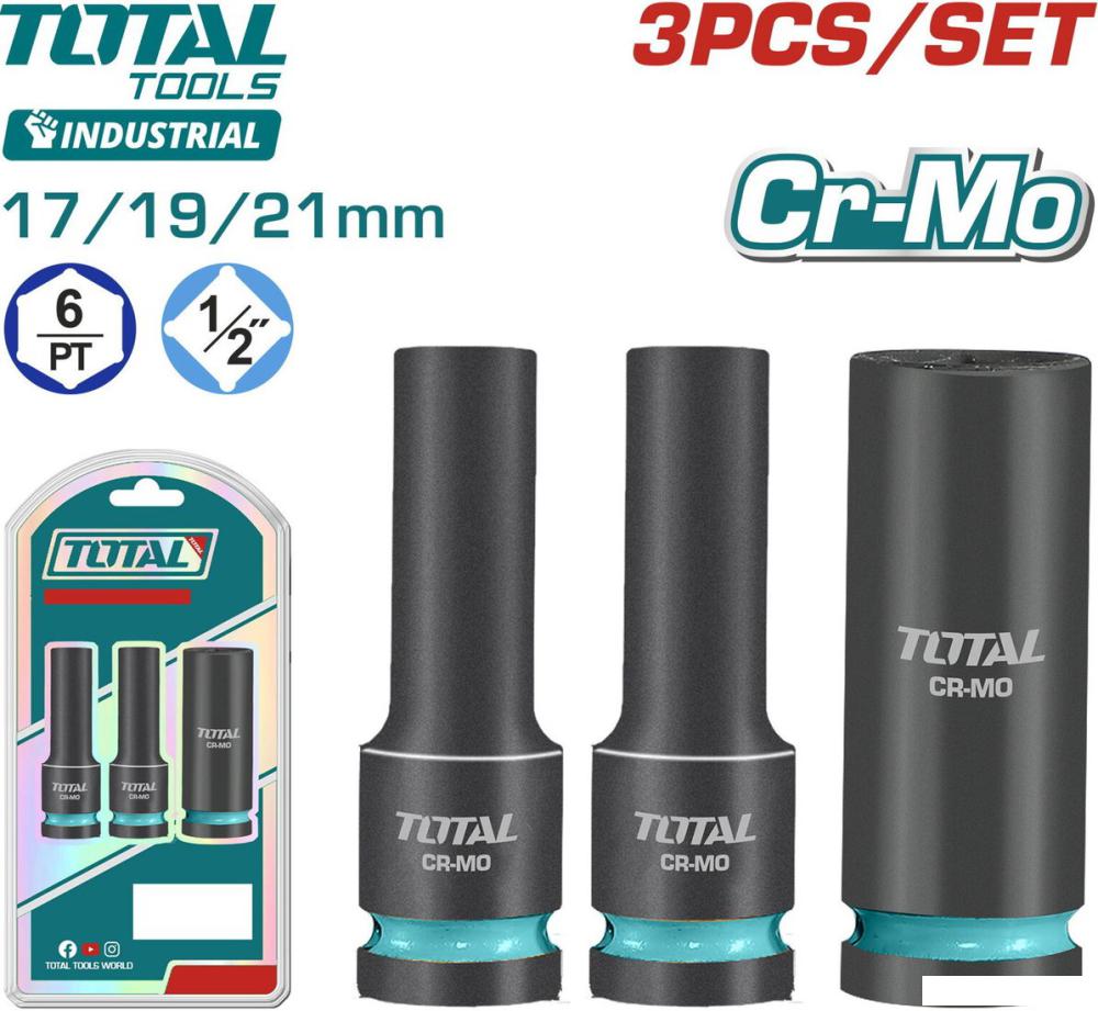 Описание Набор глубоких ударных торцевых головок предназначен для работы с ударными гайковертами и трещотками с приводом 1/2". | |