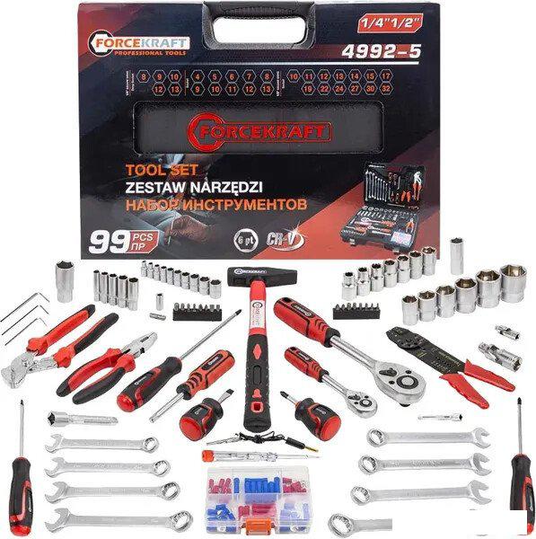 Описание Набор инструментов для автомобиля в кейсе, 99 предметов. Большой набор головок и ключей подходит как для начинающего автолюбителя, так и для опытного мастера. | |