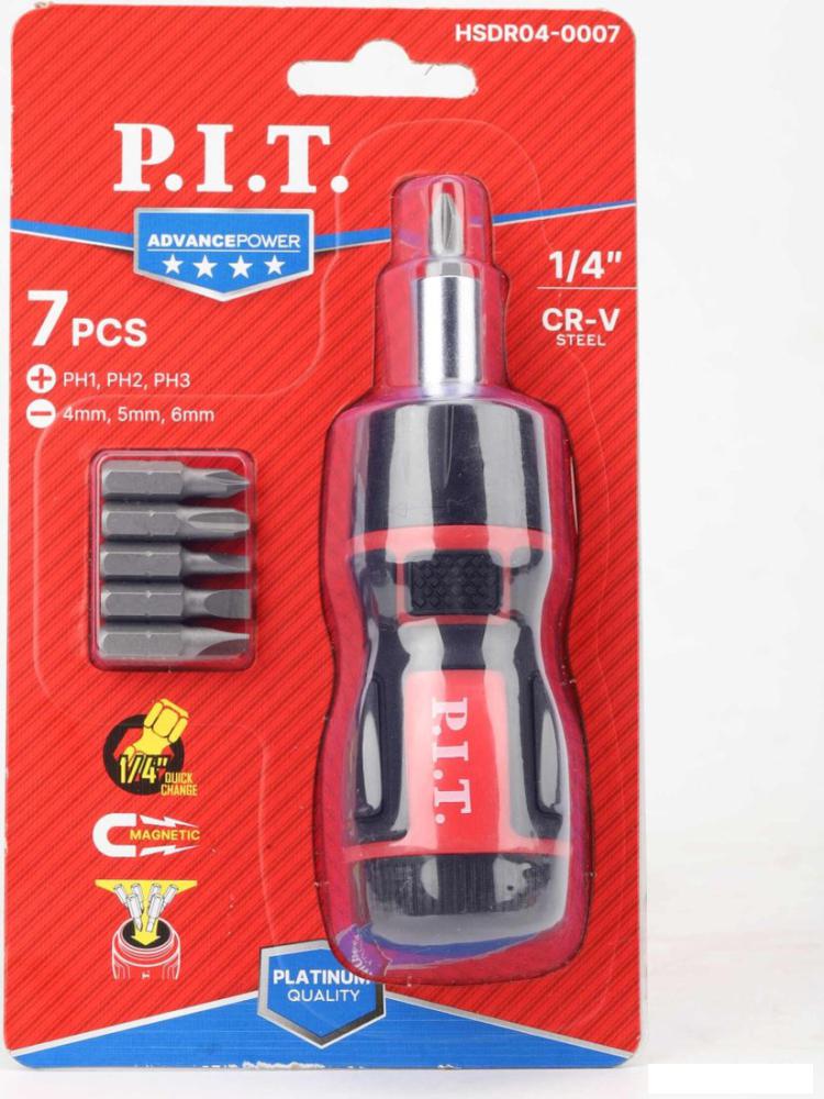 | Комплектация | ● Отвертка-держатель с трещоткой - 1 шт. ● Биты (6.35x25мм) - 6 шт. ● SL4, SL5, SL6 ● PH1, PH2, PH3 |