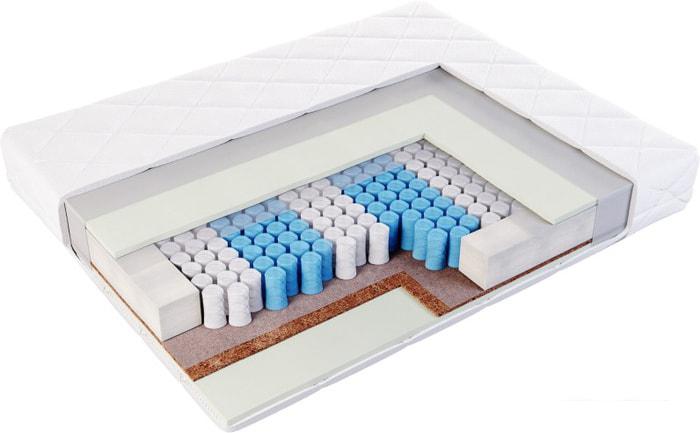 Количество зон жёсткости Как правило, в ортопедических матрасах пружинный блок имеет несколько зон, в которых различается упругость и жёсткость пружин. Это необходимо для достижения одинаковой поддержки различных частей тела - головы, шеи, плечевого пояса, талии, бедер, голеней, стоп. |