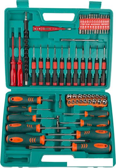 - отвёртки: SL:3x75, 5x75, 6x100, 8x150 мм; PH:0x75, 1x75, 2x200, 3x150 мм; - держатель для бит 10x40 мм; - диэлектрические отвертки: SL4X100,PH1x100 мм; - отвёртки для точной механики: SL:2.0x50, 2.5x50, 3.0x50; PH:2.0x50, 2.5x50, 3.0x50; TORX: 6x50, 8x50, 10x50, 15x50, 20x50; 25 бит: SL: 3, 4, 5, 6, 7 мм; PH: 0, 1, 2, 3 мм; PZ: 0, 1, 2, 3 мм; TORX: 10,15,20,25,30,40 мм; HEX: 2,3,4,5,5.5,6 мм; - гибкий вал 250 мм; - магнитный держатель для бит 60 мм; - тестер напряжения; - адаптер 50 мм; - ручка с магнитом; - торцевые головки: 5,6,7,8,9,10,11,12,13,5/32,3/16,1/4,5/16,11/32,3/8,7/16,15/32,1/2 |