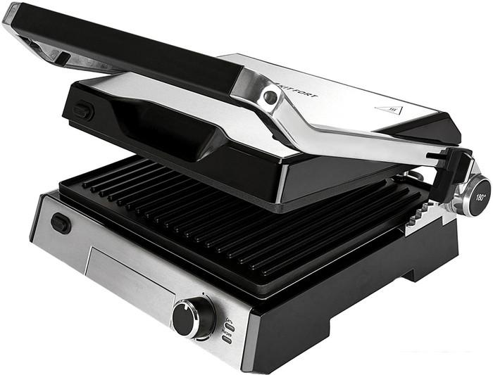 Бесконтактный электрогриль по принципу приготовления ближе к классическому грилю на углях: порции продуктов располагаются на металлической решетке, нагревательный элемент помещен под решетку, стекающий жир собирается в поддон. Впрочем, данная конструкция имеет существенные недостатки: во-первых, процесс жарки сопровождается шумом, брызгами и образованием сильного запаха, во-вторых, нагревательная спираль подвергается воздействию жира, а следовательно, требует трудоемкой очистки. |