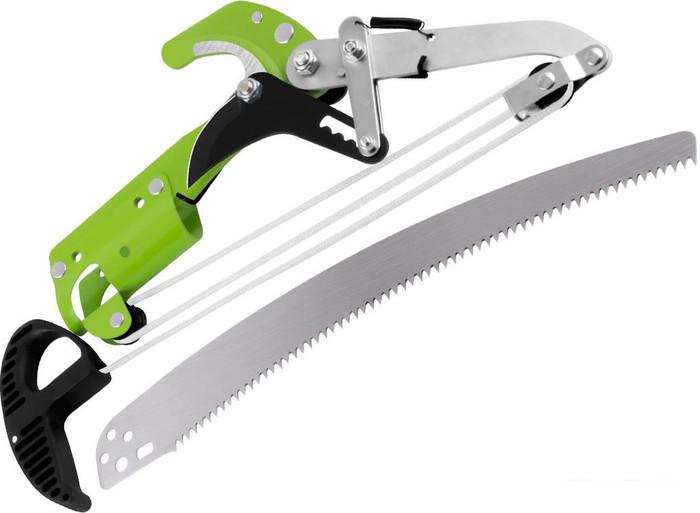 Описание Краткая информация об отличиях товара от конкурентных моделей и аналогов, сведения о позиционировании на рынке, преемственности и др. Универсальный храповый механизм (рез в несколько этапов). Увеличение режущей способности. Снижение прилагаемого усилия. Ножовка для подрезки кроны (в комплекте). Прочный натяжной трос (не перетирается длительное время). Для работы в труднодоступных местах на большой высоте (верхняя крона деревьев). Рекомендуется использовать в комплекте со штангой 0220-1 (поставляется отдельно). |