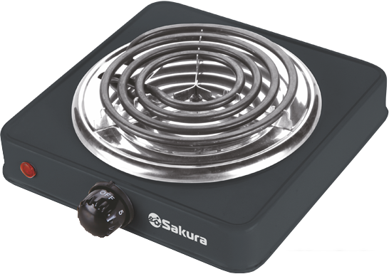 Спиральные конфорки Спиральная конфорка (также называется ТЭН-конфорка) представляет собой открытый нагревательный элемент в виде спирали. Зачастую используется в переносных бюджетных плитах. Главным недостатком такой конфорки является достаточно низкий КПД. |