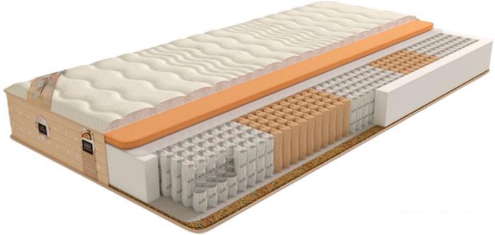 Количество зон жёсткости Как правило, в ортопедических матрасах пружинный блок имеет несколько зон, в которых различается упругость и жёсткость пружин. Это необходимо для достижения одинаковой поддержки различных частей тела - головы, шеи, плечевого пояса, талии, бедер, голеней, стоп. |