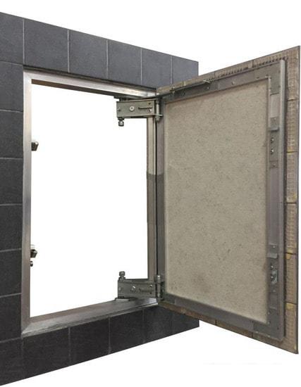 Люки под плитку монтируются на стену. Затем их поверхность облицовывается плиткой или керамогранитом, что скрывает такой люк и делает его невидимым в интерьере. |
