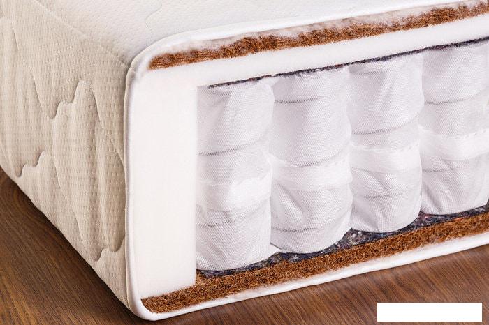 Кокосовая койра Кокосовая койра изготавливается из волокон кокосового ореха, полученных тем или иным способом. Натуральный материал пропитываются латексом (искуственным или натуральным) и приобретают упругость, быстро восстанавливают первоначальную форму, не имеют остаточной деформации. Впрочем, считается, что кокосовые койры недолговечны и могут со временем деформироваться. Слой кокосовой койры придает матрасу дополнительную жёсткость. |