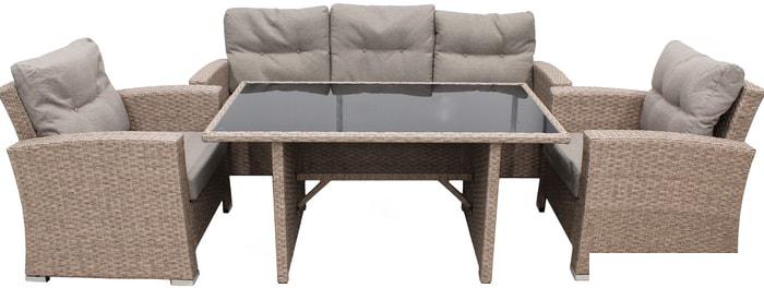 Состав набора Существует несколько типовых наборов мебели для сада. В состав обеденной группы входит стол и стулья - 2, 4 или 6 штук. В состав мебели для отдыха входит диван и столик, иногда дополняемые двумя креслами. |