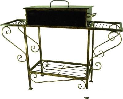 Полка для дров (принадлежностей) Наличие шкафа, чаще всего встроенного в опору жаровни, для хранения посуды и других принадлежностей. |