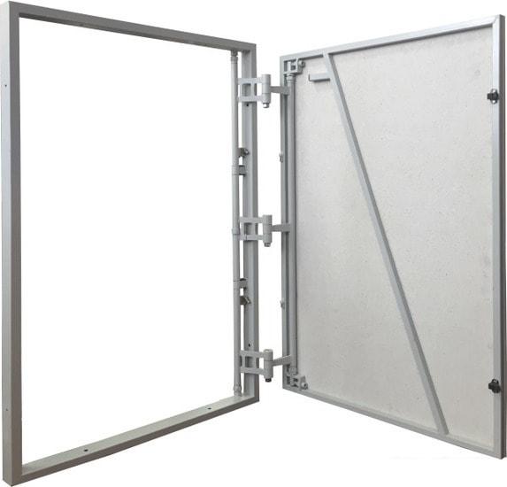 Распашной люк открывается как обычная дверь, отличие может быть только в типе петель: у люков под плитку они обычно двухзвенные. |