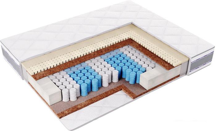Количество зон жёсткости Как правило, в ортопедических матрасах пружинный блок имеет несколько зон, в которых различается упругость и жёсткость пружин. Это необходимо для достижения одинаковой поддержки различных частей тела - головы, шеи, плечевого пояса, талии, бедер, голеней, стоп. |