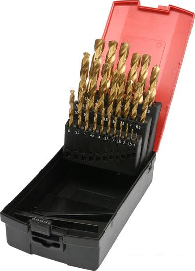 Наб. сверл по мет. HSS-TiN 1; 1,5; 2; 2,5; 3; 3,5; 4; 4,5; 5; 5,5; 6; 6,5; 7; 7,5; 8; 8,5; 9; 9,5; 10; 10,5; 11; 11,5; 12; 12,5; 13 мм. |