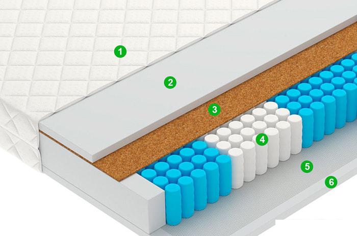 Базовый блок - это основной элемент конструкции матраса, который обеспечивает его упругость. Ортопедические свойства, и вообще комфортность матраса во многом определяются характеристиками базового блока. Основные базовые блоки по возрастанию ортопедических свойств и стоимости: |