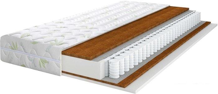 Кокосовая койра Кокосовая койра изготавливается из волокон кокосового ореха, полученных тем или иным способом. Натуральный материал пропитываются латексом (искуственным или натуральным) и приобретают упругость, быстро восстанавливают первоначальную форму, не имеют остаточной деформации. Впрочем, считается, что кокосовые койры недолговечны и могут со временем деформироваться. Слой кокосовой койры придает матрасу дополнительную жёсткость. |
