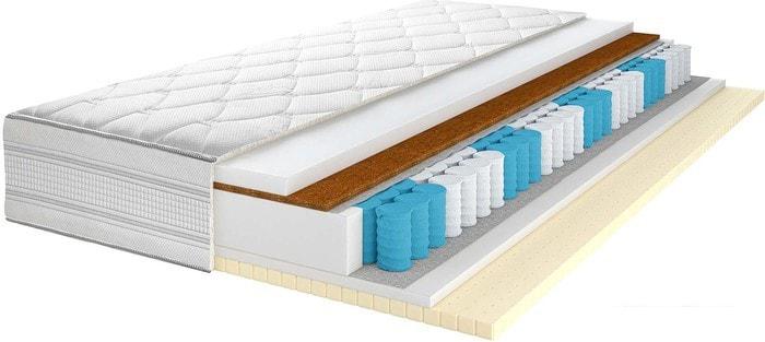 Количество зон жёсткости Как правило, в ортопедических матрасах пружинный блок имеет несколько зон, в которых различается упругость и жёсткость пружин. Это необходимо для достижения одинаковой поддержки различных частей тела - головы, шеи, плечевого пояса, талии, бедер, голеней, стоп. |