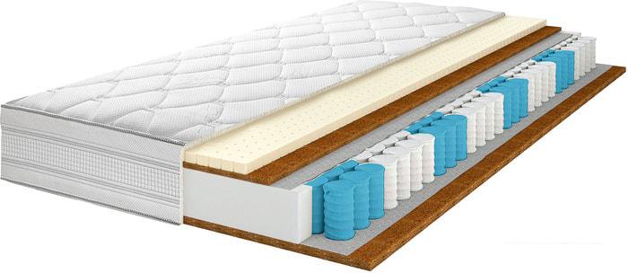 Кокосовая койра Кокосовая койра изготавливается из волокон кокосового ореха, полученных тем или иным способом. Натуральный материал пропитываются латексом (искуственным или натуральным) и приобретают упругость, быстро восстанавливают первоначальную форму, не имеют остаточной деформации. Впрочем, считается, что кокосовые койры недолговечны и могут со временем деформироваться. Слой кокосовой койры придает матрасу дополнительную жёсткость. |