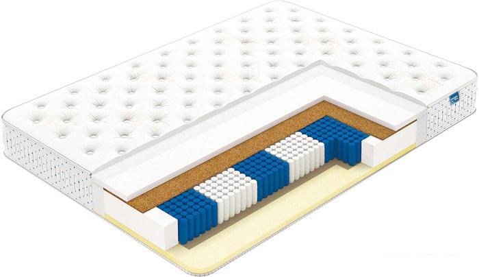Кокосовая койра Кокосовая койра изготавливается из волокон кокосового ореха, полученных тем или иным способом. Натуральный материал пропитываются латексом (искуственным или натуральным) и приобретают упругость, быстро восстанавливают первоначальную форму, не имеют остаточной деформации. Впрочем, считается, что кокосовые койры недолговечны и могут со временем деформироваться. Слой кокосовой койры придает матрасу дополнительную жёсткость. |