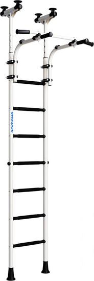 Описание Краткая информация об отличиях товара от конкурентных моделей и аналогов, сведения о позиционировании на рынке, преемственности и др. Спортивный комплекс - универсальное решение для квартиры или дома. Он устанавливается к стене. Обладает лаконичным дизайном, можно выбрать из двух расцветок - черный или черно-белый. В комплекте идет лестница и регулируемый по высоте турник. Его можно перемещать по вертикали, подстраивая под рост тренирующегося. Металлоконструкция комплекса выдерживает вес до 100 кг (испытывается при 200 кг). |