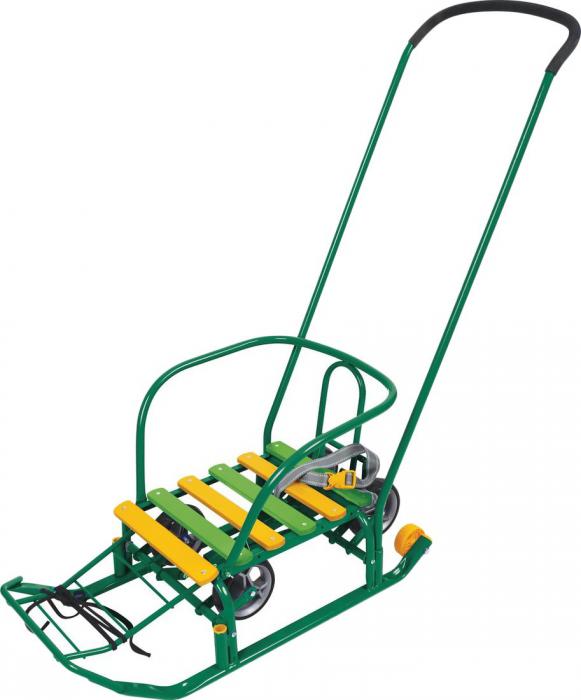 Описание Краткая информация об отличиях товара от конкурентных моделей и аналогов, сведения о позиционировании на рынке, преемственности и др. - 2 в 1: колеса и полозья позволяют свободно передвигать санки по любой дороге |