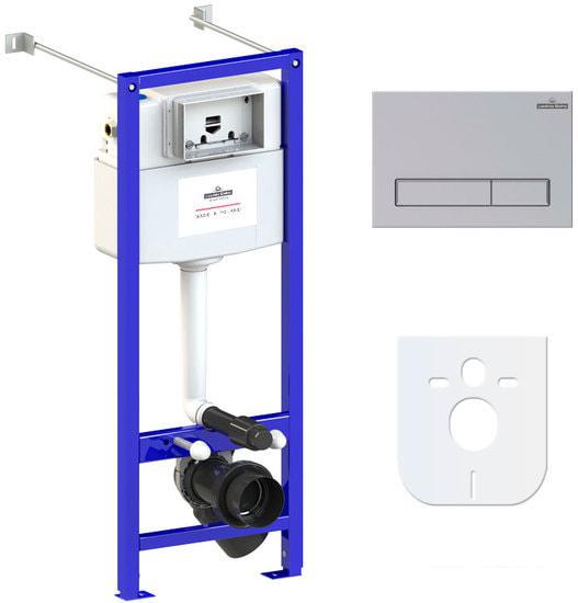 Рамные системы инсталляции представляют собой жесткую металлическую раму и используются для полых перегородок, так как переносят нагрузку от веса сантехнического прибора на пол, а не на саму стену. |