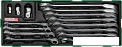 - Ключи комбинированные: 8, 9, 10, 11, 12, 13, 14, 15, 16, 17, 18, 19 мм - Переходники: 1/4" Dr. x 10 мм, 3/8" Dr. x 13 мм, 1/2" Dr. x 19 мм |